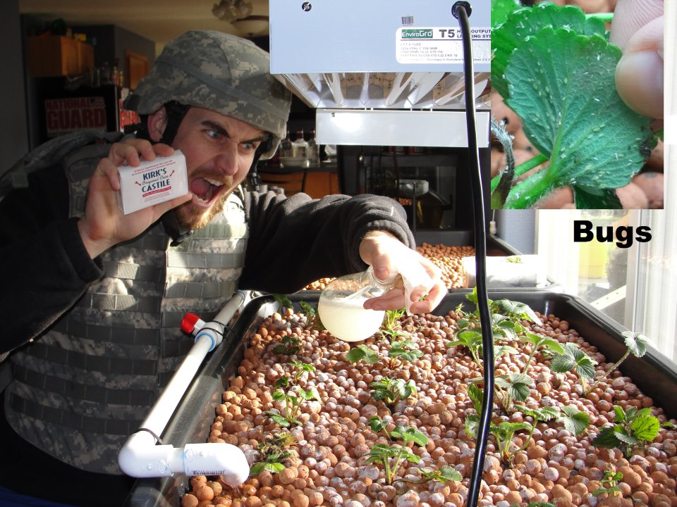 Not one week after getting my aquaponics system fully functional the bugs have taken over (as shown by the small photo in the upper right).