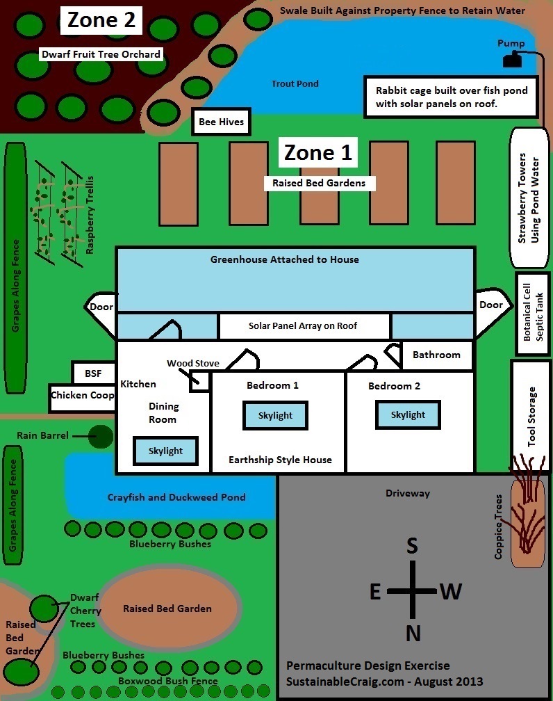 I recently submitted my permaculture design exercise while attending Geoff Lawton’s Online Permaculture Design Course. I thought I’d share my design here on my site. I’m always looking for more ideas and modifications so feel free to chip in with your thoughts.