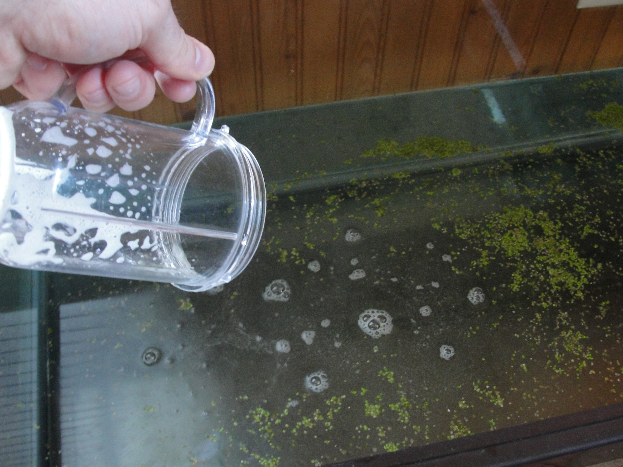 I rinse and dump the remnants from my glass into the duckweed container in hopes it will add some nutrients to the water. The duckweed is then used to feed my tilapia. This is a great low impact meal as it doesn’t cook out any nutrients and doesn’t create any waste.