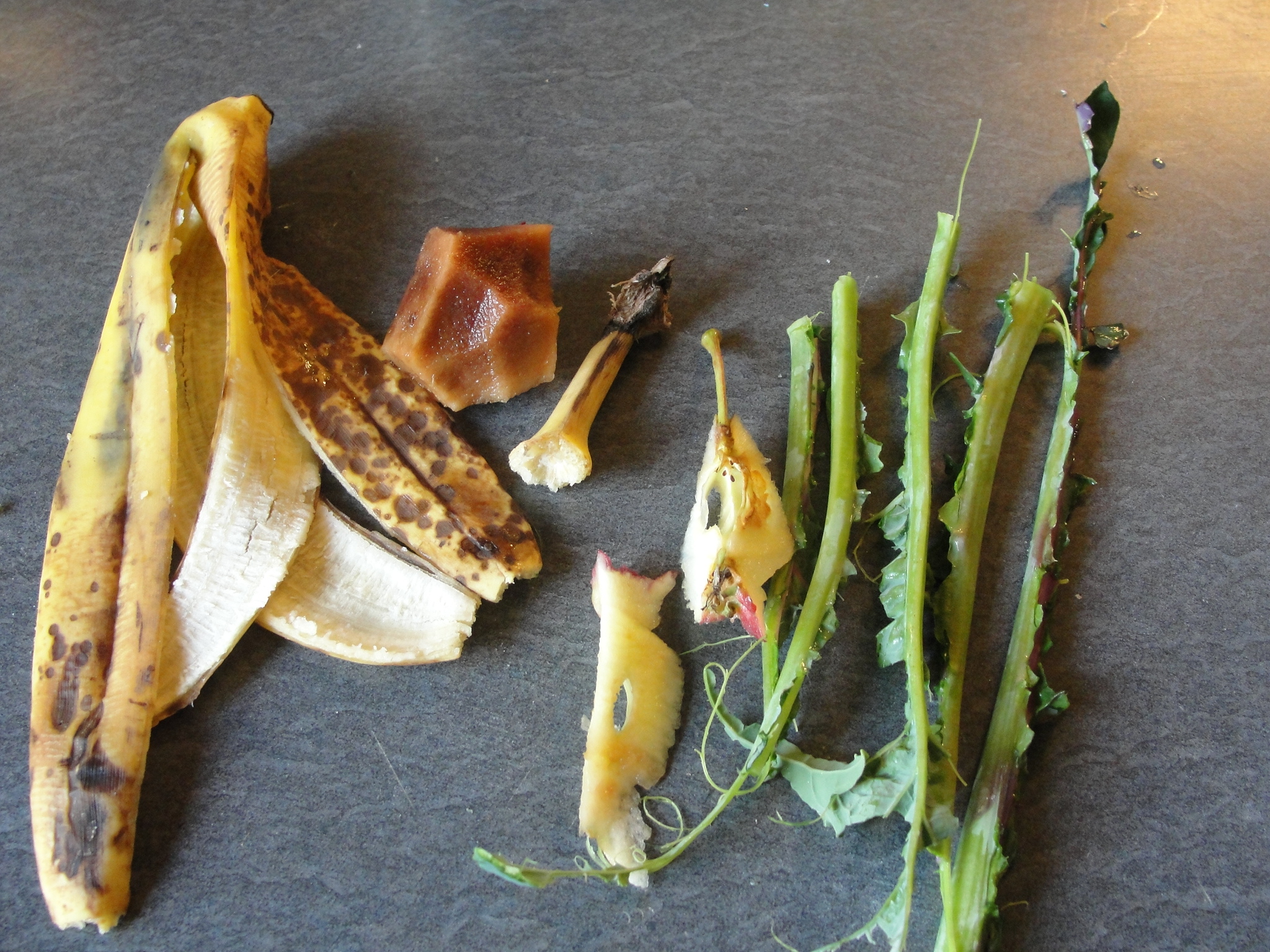 The kale stems and apple cores can be fed to rabbits or chickens. If you don’t have animals you can compost them or feed them to black soldier fly larvae.