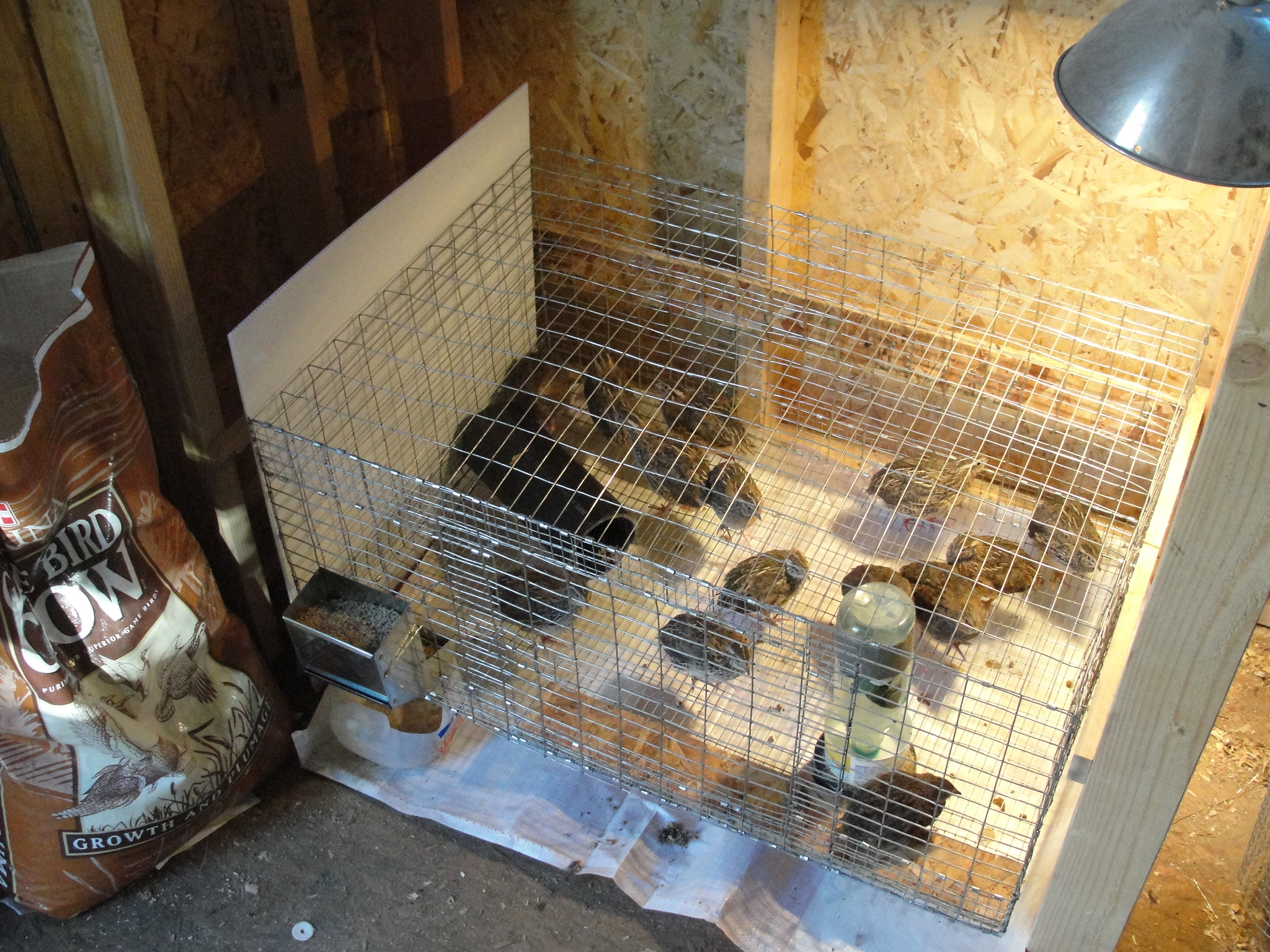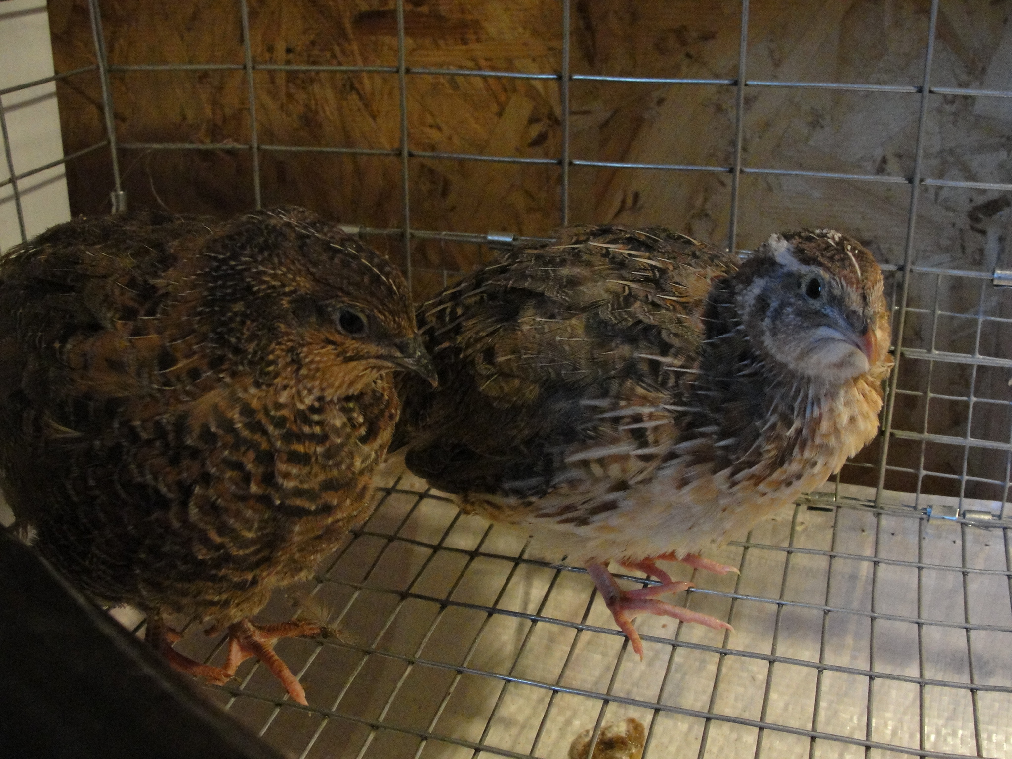 I’m still not able to distinguish the male from female quails. They are now approximately 3.5 weeks old. They outgrew their brooding pen so I moved them into an unused rabbit cage inside of my shed.