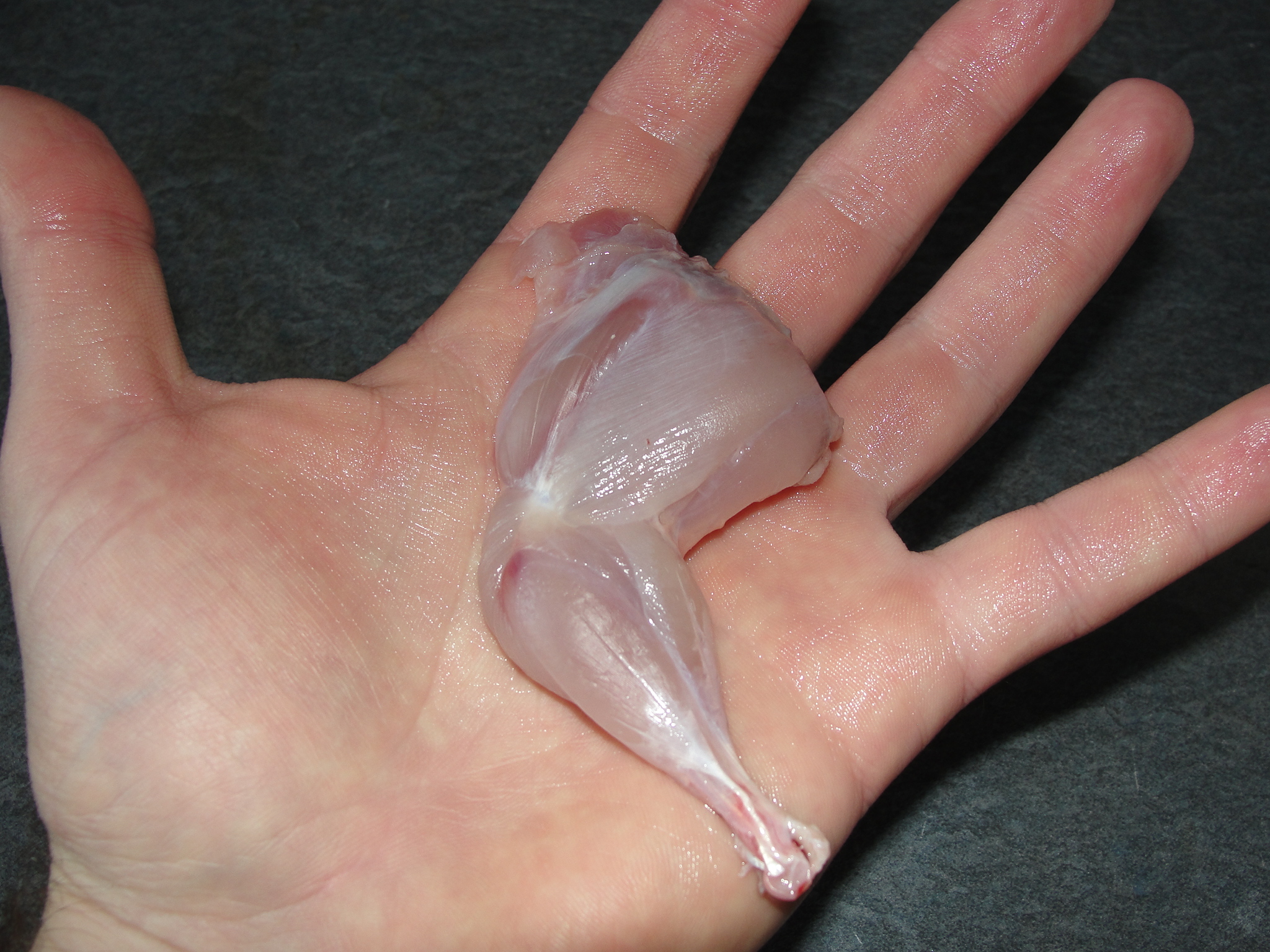 The process of killing the quail is relatively simple. You hold the bird in one hand and use a kitchen shears behind their neck with the other hand. With one good cut you can sever the spine and neck and the follow through cut will take the rest of the head off. Their bodies will spasm for a minute or two and the blood drains out the neck. From that point you cut off the wings and feet. The feathers don’t need to be plucked. Instead you can pull the skin off starting by making a tear at the top of the breast. The rest of the skin pulls off. Then you must cut along the spine to remove it. The internal organs scoop out of the ribcage easily. I keep the heart by feed the rest of the entrails to my black soldier fly larvae.