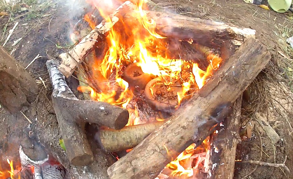 I waited a few days for the pots to dry completely, and then made a fire to preheat the pots. I then placed the pots inside a large ring of fire.