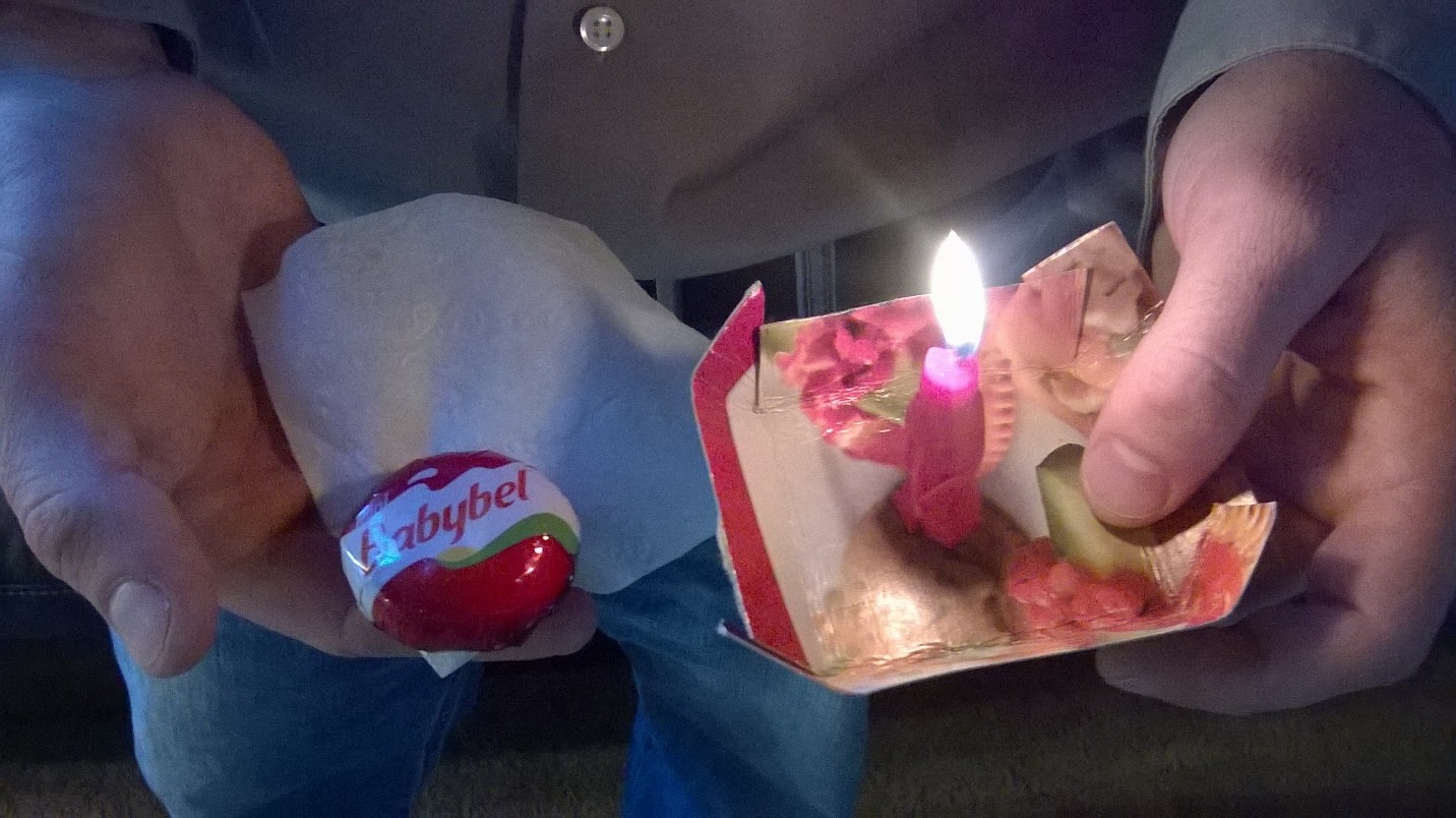 Step 7: Light the candle and enjoy the satisfaction of watching your child turn garbage into a useful project every time you buy that cheese.