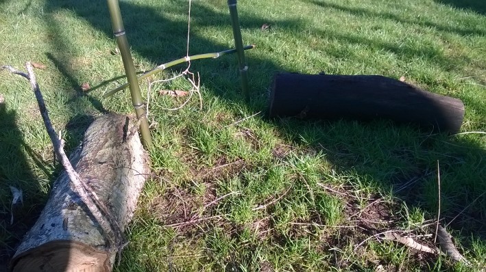 The snare should be located on a game trail. By poking sticks into the ground or building up brush along the trail one can theoretically funnel animals into the snare.