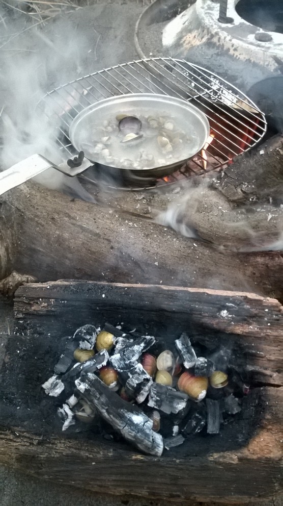 As the sun faded away it was finally time to eat! This would be our first food in 24 hours. I put about 1/3 of the clams directly onto some coals to bake and boiled the other 2/3’s over the fire. Mike opted out of eating the clams, as he thought I was sure to end up shitting my guts out all night (Which did not happen). The clams were bland, but I was happy to have some food in my stomach.