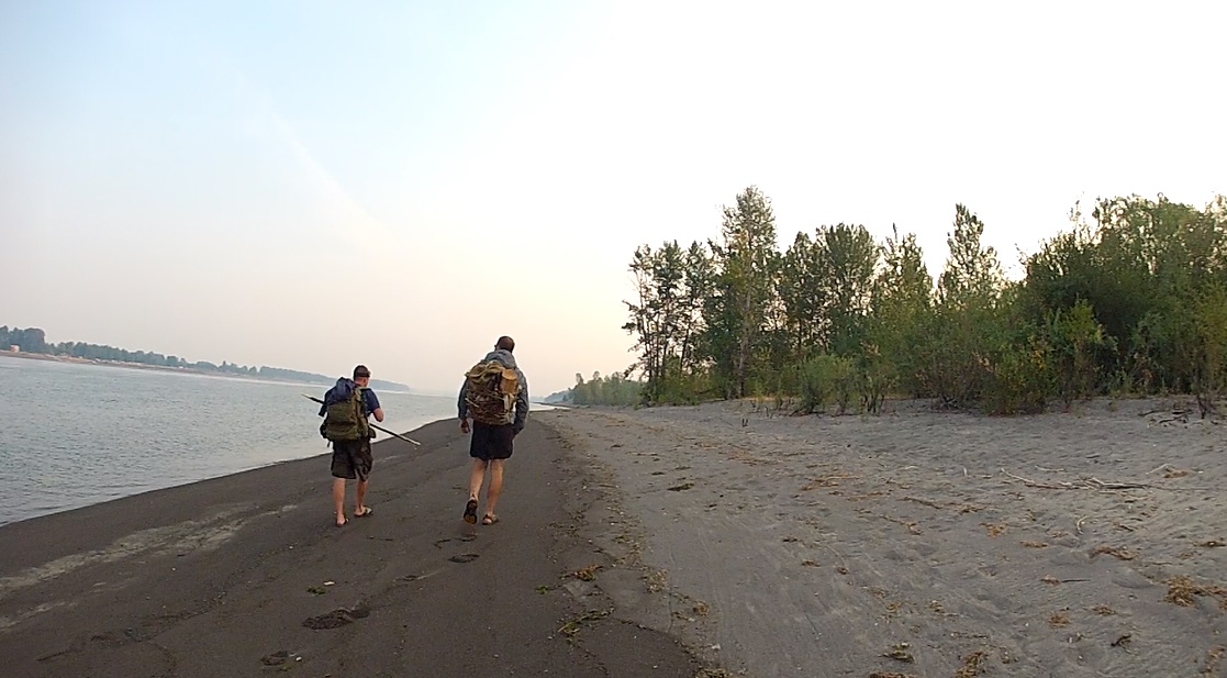Our snare still hadn’t caught anything, so I pulled it out of the tree, leaving the marshmallow for some lucky creature. I hefted my newly created backpack and we trekked back down the beach to our exfil point, where we then swam back across the river to Mike’s awaiting truck.