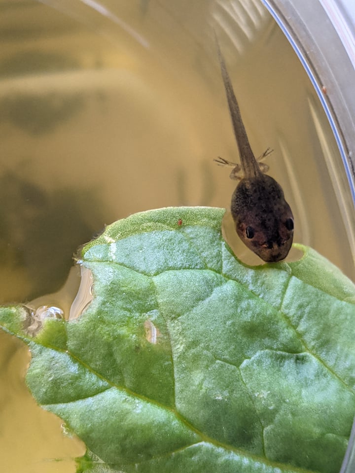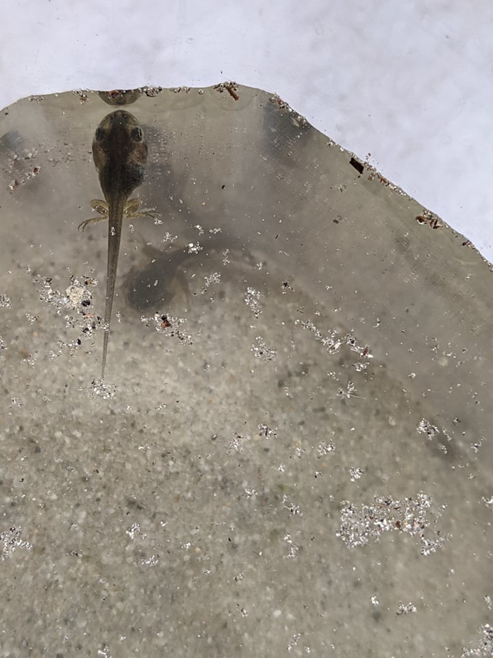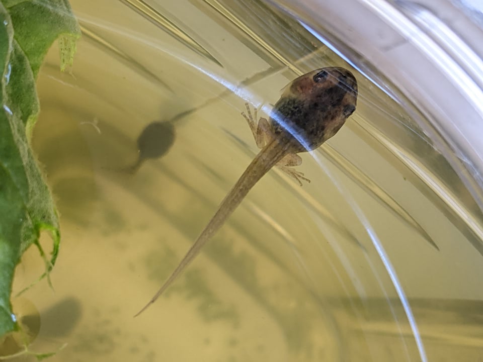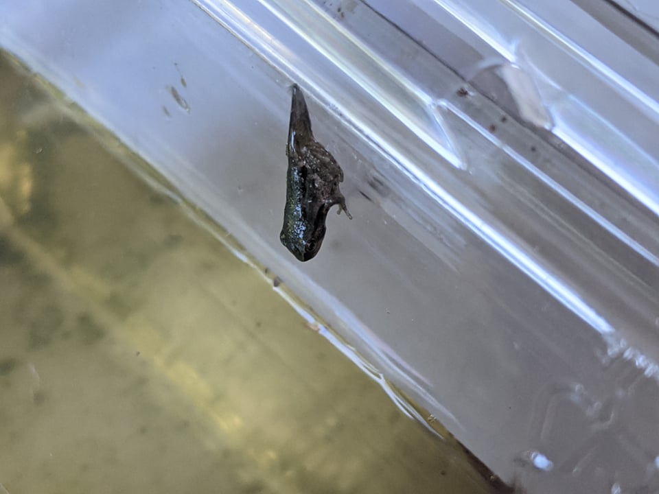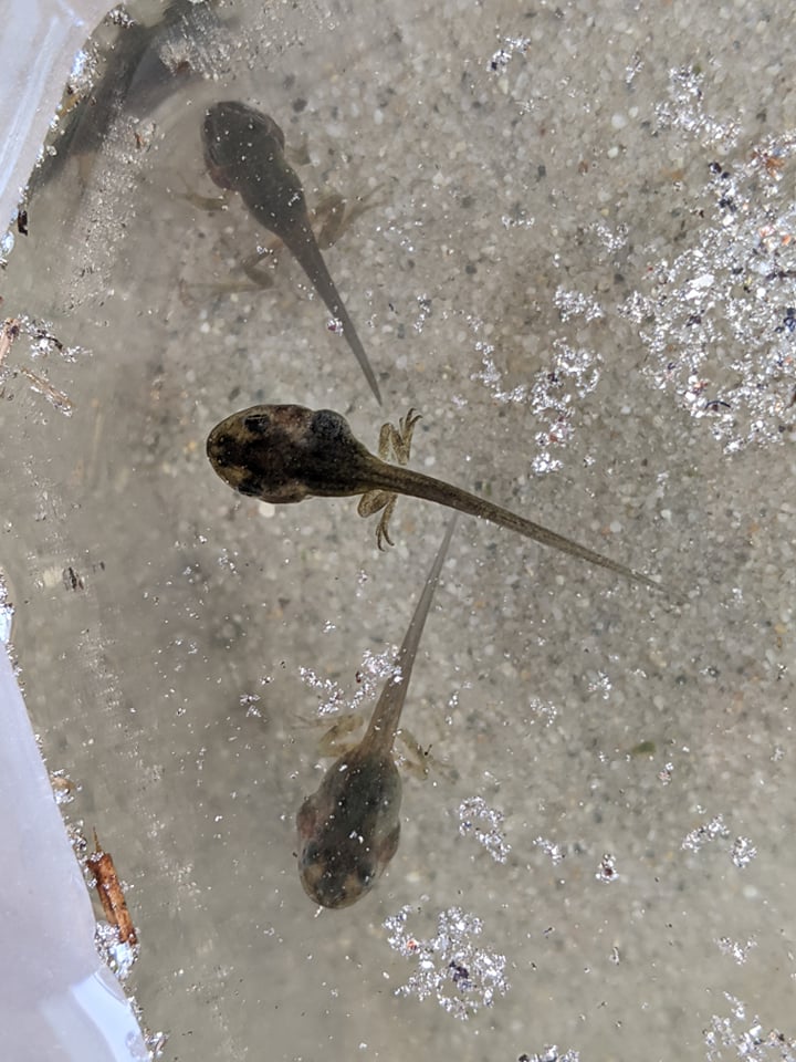 I found some tadpoles in a bin in the yard that had filled with rainwater. There were hundreds of them so I decided to scoop a few into a smaller container to take inside so I could watch them as they grew.