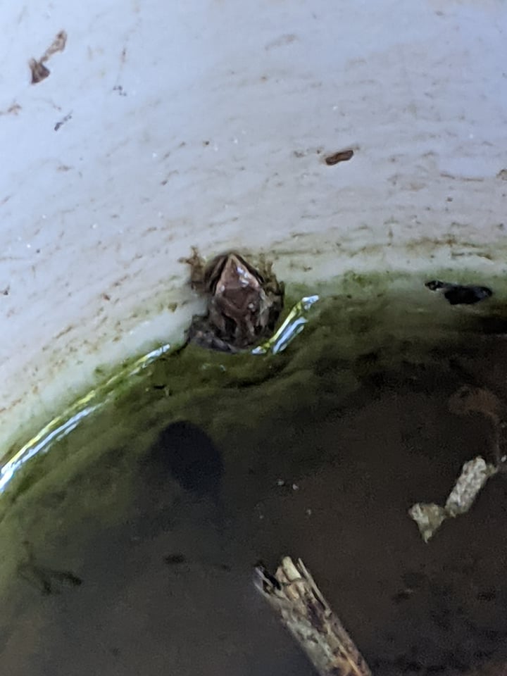 Many of the tadpoles outside died, but there are still plenty out there too. Unfortunately we have some mosquito larvae growing in there alongside them and the tadpoles don’t eat the larvae. As soon as they grow into frogs I’m looking forward to dumping out that bin.